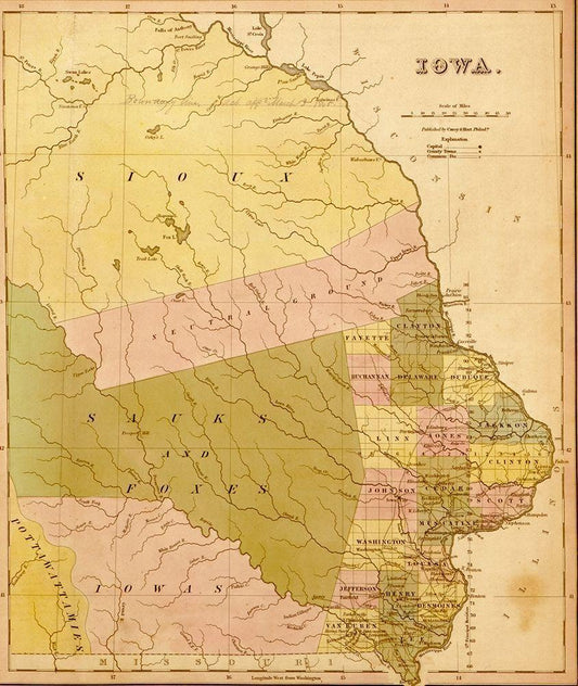 Iowa 1844 White Modern Wood Framed Art Print with Double Matting by Vintage Maps