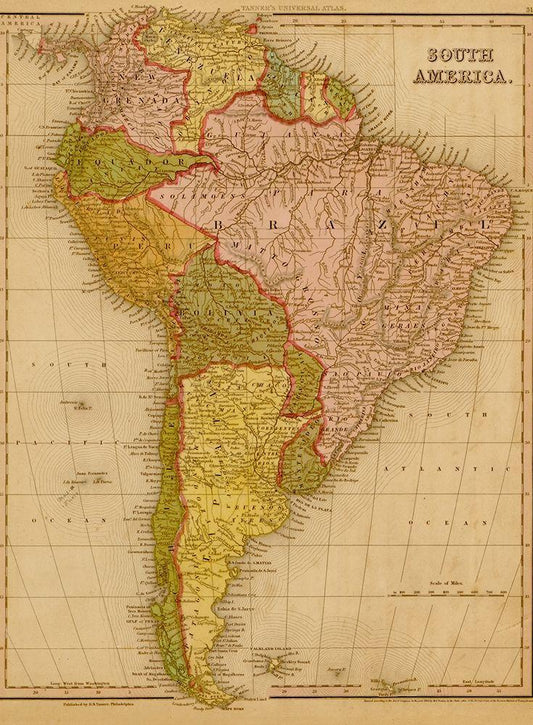 South America 1844 White Modern Wood Framed Art Print with Double Matting by Vintage Maps