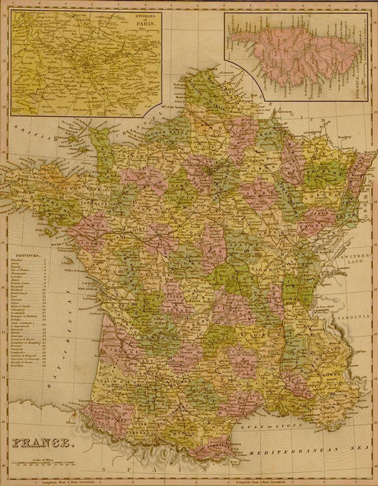 France 1844 White Modern Wood Framed Art Print with Double Matting by Vintage Maps