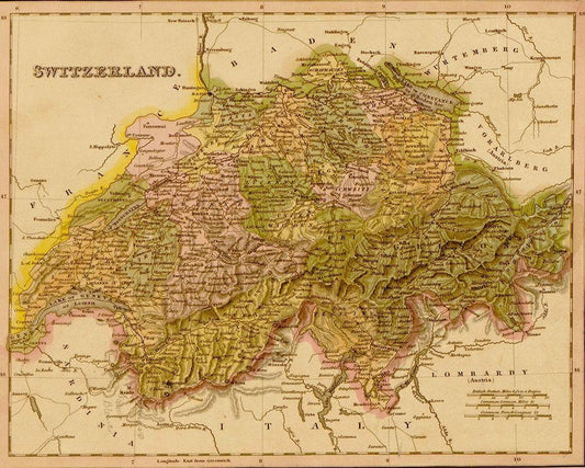 Switzerland 1844 White Modern Wood Framed Art Print with Double Matting by Vintage Maps
