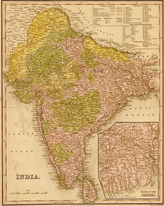 India 1844 White Modern Wood Framed Art Print with Double Matting by Vintage Maps