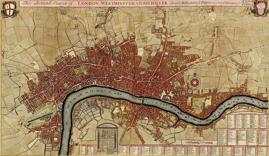 Survey of London Westminster and Southwark 1700 White Modern Wood Framed Art Print with Double Matting by Vintage Maps