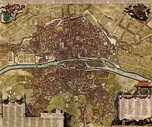 City Plan Paris 1700 White Modern Wood Framed Art Print with Double Matting by Vintage Maps