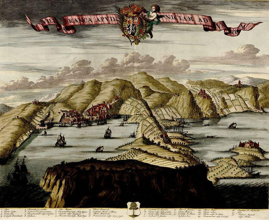 Toulon France Harbor and Defenses 1700 White Modern Wood Framed Art Print with Double Matting by Vintage Maps