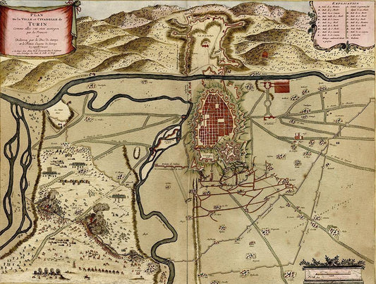Turin or Torino and Its Envisons 1700 White Modern Wood Framed Art Print with Double Matting by Vintage Maps