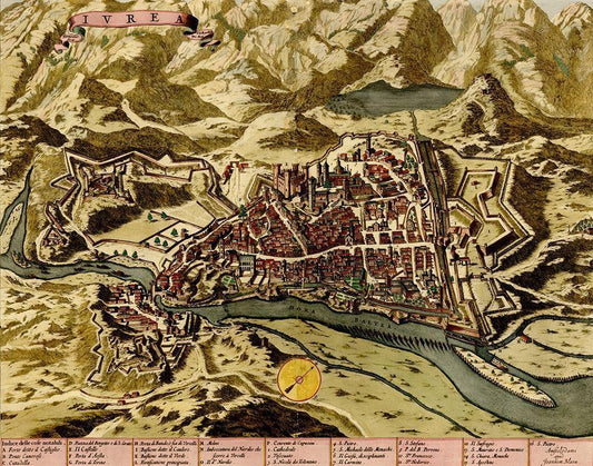 Ivrea Near Turin 1700 White Modern Wood Framed Art Print with Double Matting by Vintage Maps