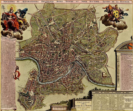 Rome on the Tiber and The Vatican 1700 White Modern Wood Framed Art Print with Double Matting by Vintage Maps