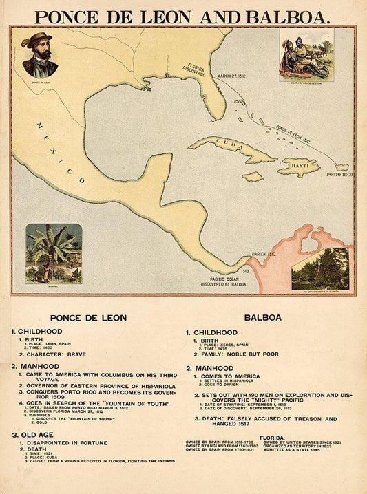 Ponce de Leon and Balboa White Modern Wood Framed Art Print with Double Matting by Vintage Maps