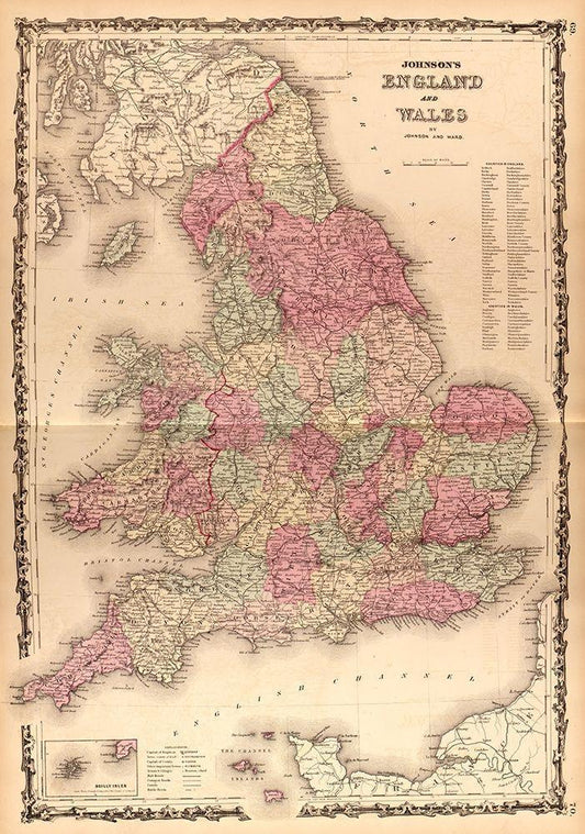 England and Wales 1862 White Modern Wood Framed Art Print with Double Matting by Vintage Maps