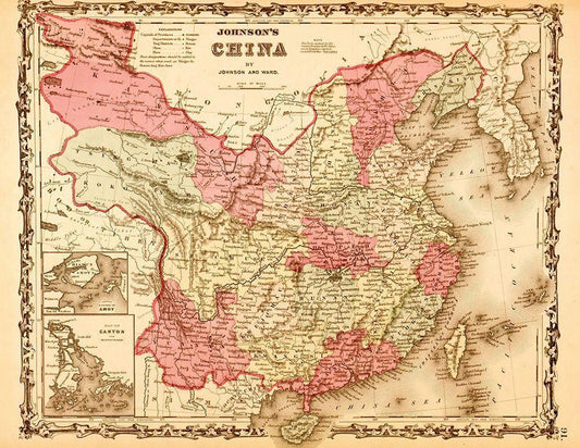 China 1862 White Modern Wood Framed Art Print with Double Matting by Vintage Maps