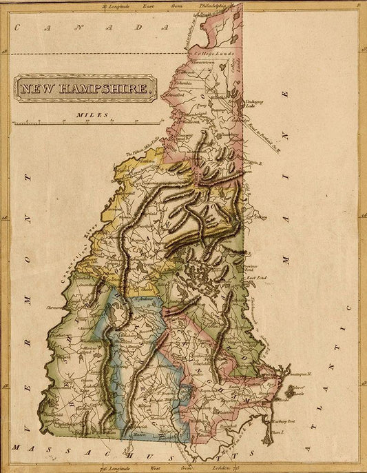 New Hampshire 1817 White Modern Wood Framed Art Print with Double Matting by Vintage Maps