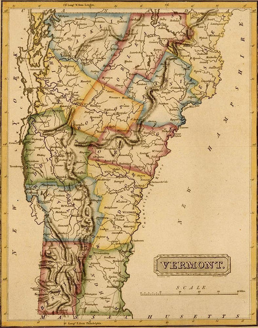 Vermont 1817 White Modern Wood Framed Art Print with Double Matting by Vintage Maps