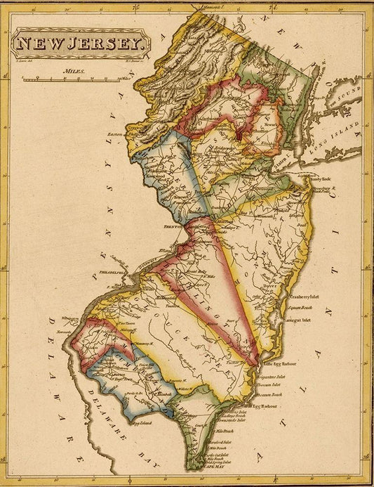 New Jersey 1817 White Modern Wood Framed Art Print with Double Matting by Vintage Maps