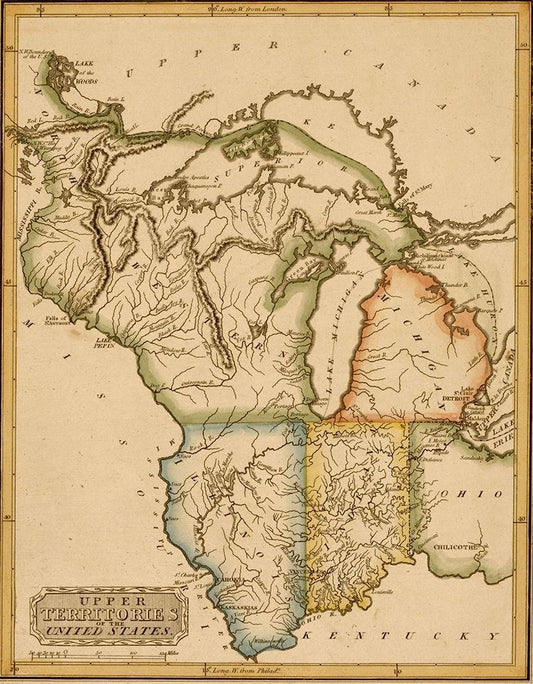 Upper Territories of the United States 1817 White Modern Wood Framed Art Print with Double Matting by Vintage Maps