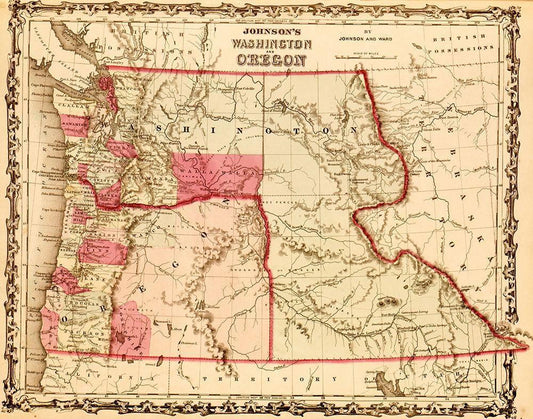 Washington and Oregon Territories 1862 White Modern Wood Framed Art Print with Double Matting by Vintage Maps