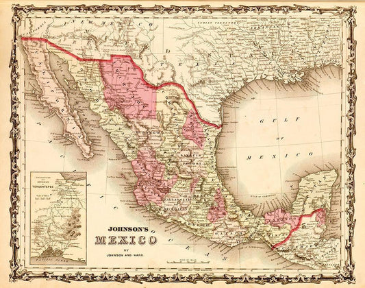Mexico 1862 White Modern Wood Framed Art Print with Double Matting by Vintage Maps