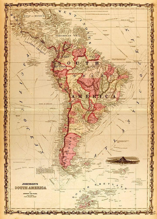 South America 1862 White Modern Wood Framed Art Print with Double Matting by Vintage Maps