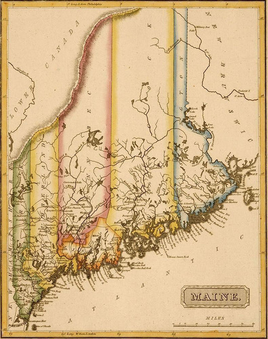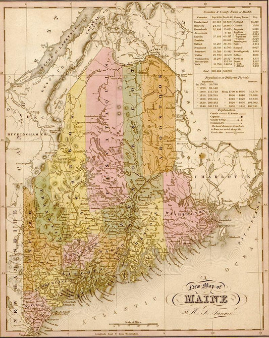 Maine 1817 White Modern Wood Framed Art Print with Double Matting by Vintage Maps