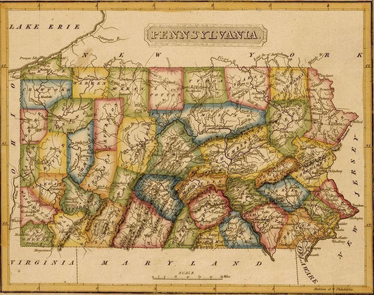 Pennsylvania 1817 White Modern Wood Framed Art Print with Double Matting by Vintage Maps