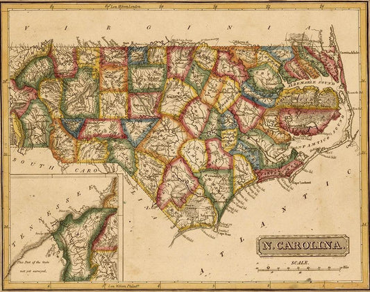 North Carolina 1817 White Modern Wood Framed Art Print with Double Matting by Vintage Maps