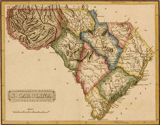 South Carolina 1817 White Modern Wood Framed Art Print with Double Matting by Vintage Maps