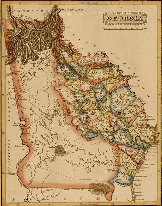 Georgia 1817 White Modern Wood Framed Art Print with Double Matting by Vintage Maps