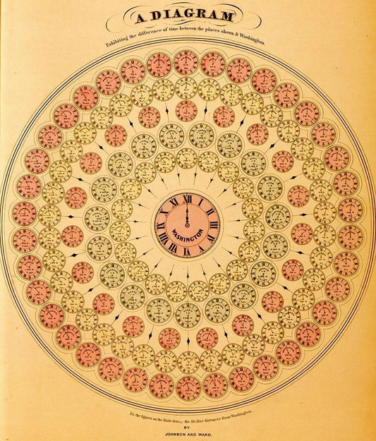 Diagram of Time Differences White Modern Wood Framed Art Print with Double Matting by Vintage Maps