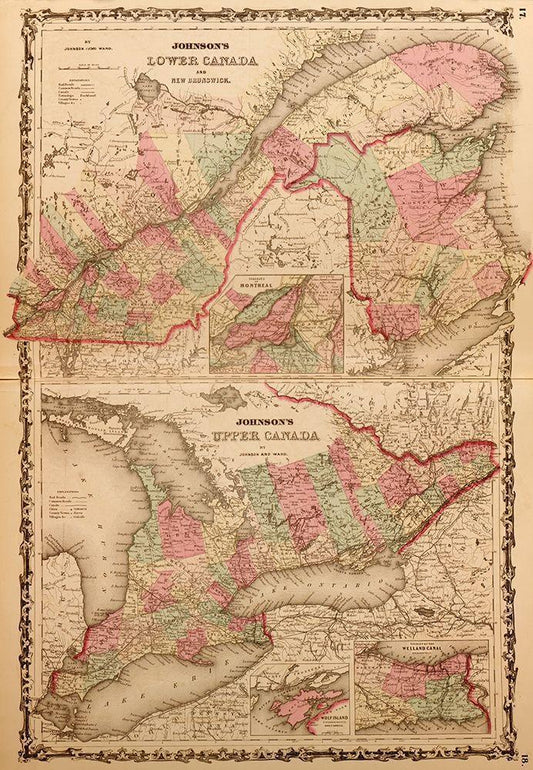 Lower Canada and New Brunswick 1862 White Modern Wood Framed Art Print with Double Matting by Vintage Maps