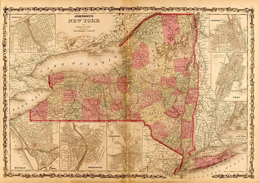 New York 1862 White Modern Wood Framed Art Print with Double Matting by Vintage Maps