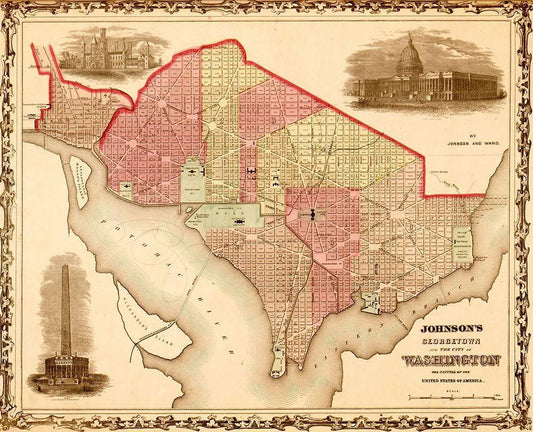 Washington DC 1862 White Modern Wood Framed Art Print with Double Matting by Vintage Maps