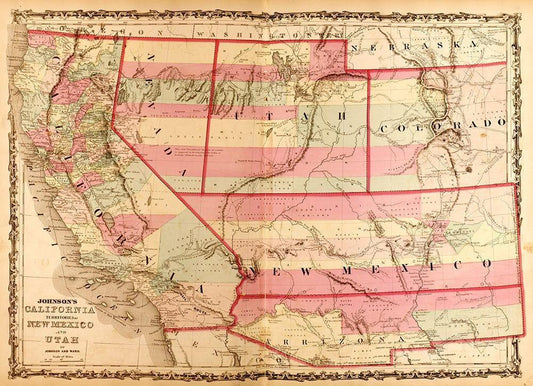 California and the Territories of Utah and Mexico 1862 White Modern Wood Framed Art Print with Double Matting by Vintage Maps