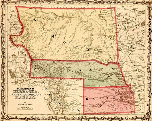 Nebraska Colorado and Kansas 1862 White Modern Wood Framed Art Print with Double Matting by Vintage Maps