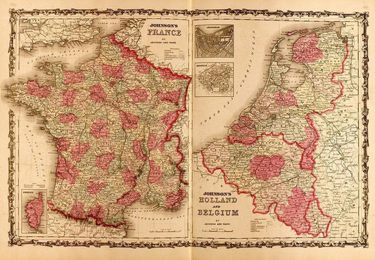 France Holland and Belgium 1862 White Modern Wood Framed Art Print with Double Matting by Vintage Maps
