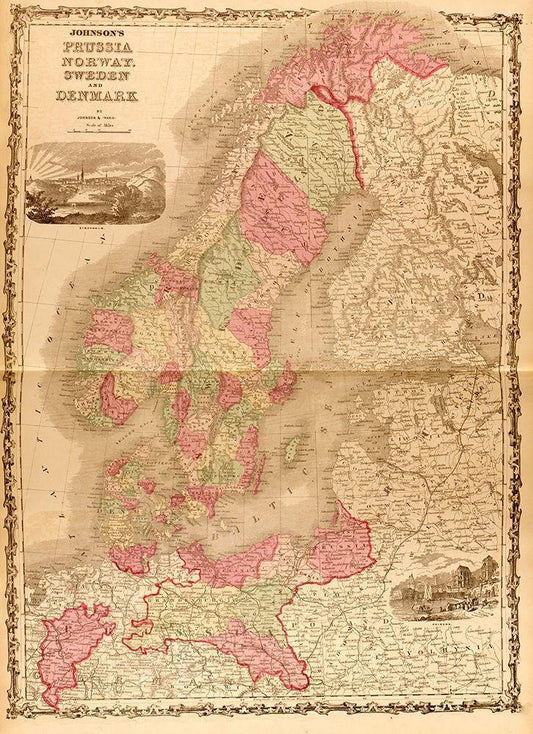 Russia Norway Sweden and Denmark 1862 White Modern Wood Framed Art Print with Double Matting by Vintage Maps