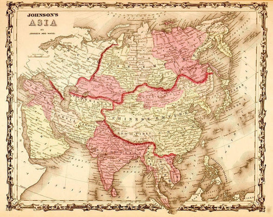 Asia 1862 White Modern Wood Framed Art Print with Double Matting by Vintage Maps