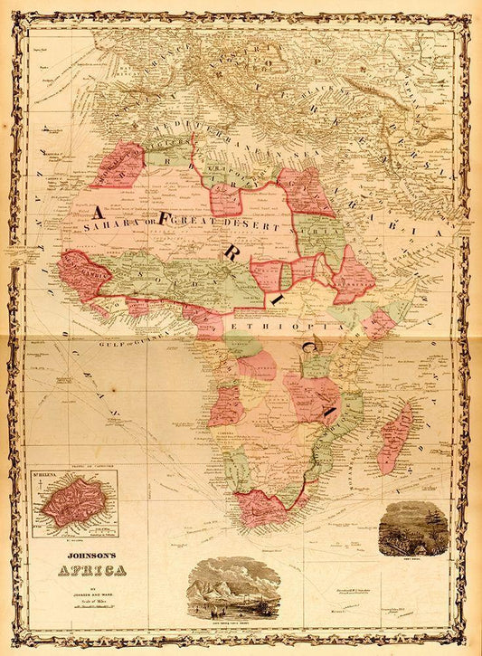 Africa 1862 White Modern Wood Framed Art Print with Double Matting by Vintage Maps