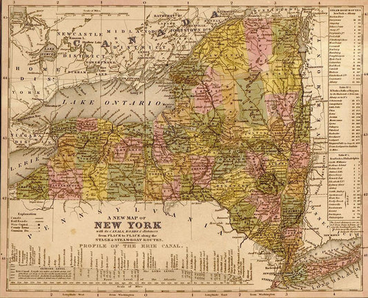 New York 1844 White Modern Wood Framed Art Print with Double Matting by Vintage Maps