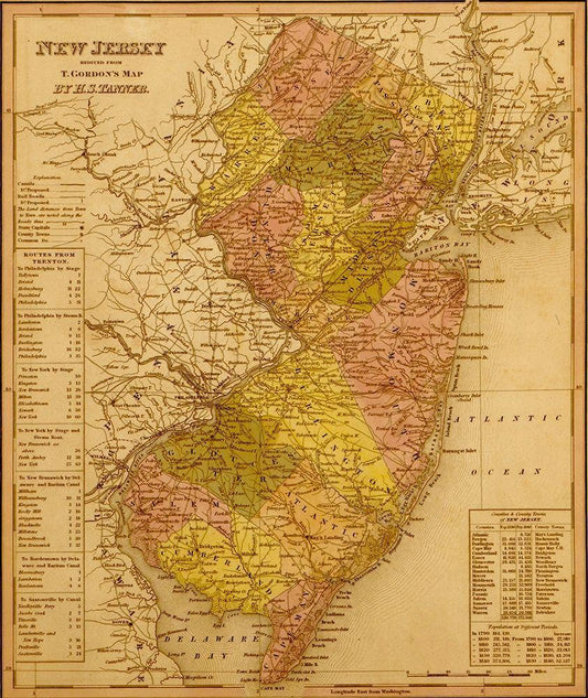 New Jersey 1844 White Modern Wood Framed Art Print with Double Matting by Vintage Maps