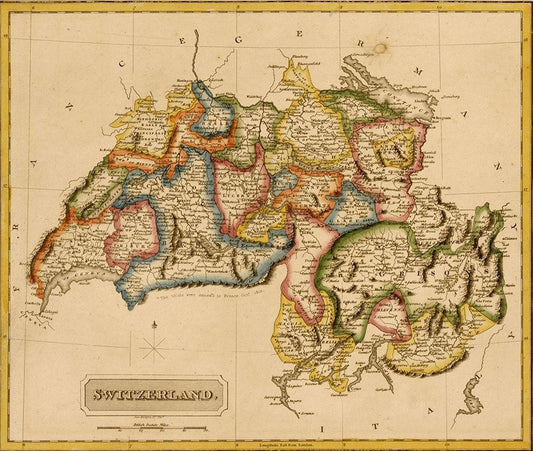 Switzerland 1817 White Modern Wood Framed Art Print with Double Matting by Vintage Maps