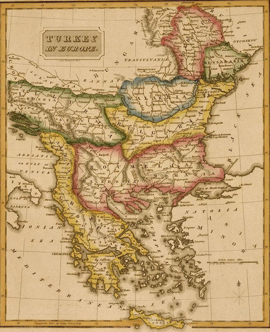 Turkey Greece 1817 White Modern Wood Framed Art Print with Double Matting by Vintage Maps