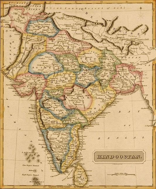 Hindustan Hindoostan India 1817 White Modern Wood Framed Art Print with Double Matting by Vintage Maps