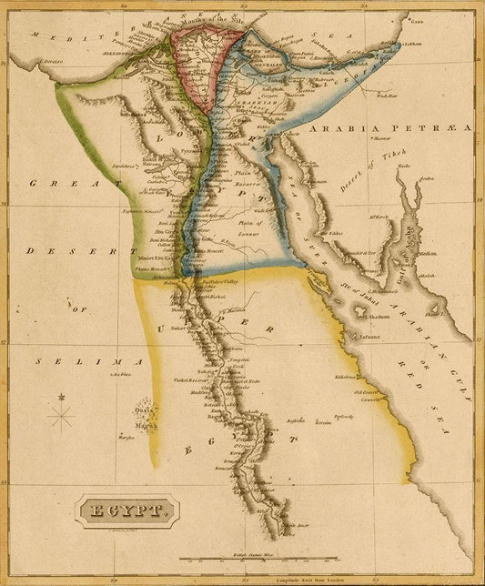 Egypt and the Nile Delta 1817 White Modern Wood Framed Art Print with Double Matting by Vintage Maps