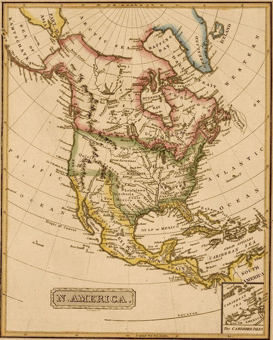 North America 1817 White Modern Wood Framed Art Print with Double Matting by Vintage Maps