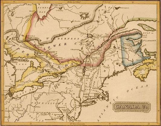 Canada 1817 White Modern Wood Framed Art Print with Double Matting by Vintage Maps