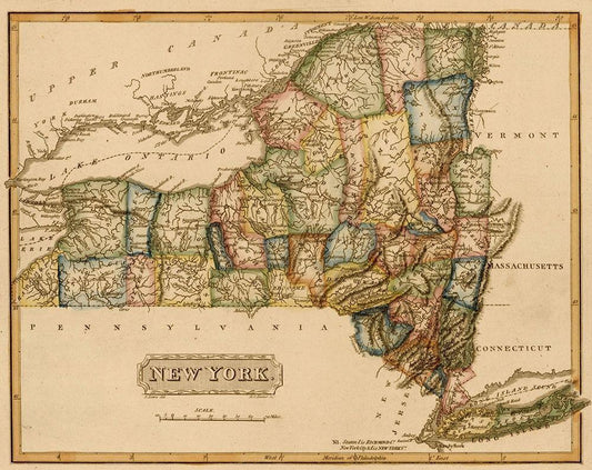 New York 1817 White Modern Wood Framed Art Print with Double Matting by Vintage Maps