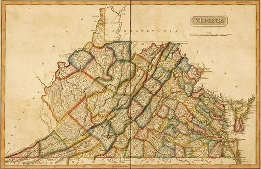 Virginia 1817 White Modern Wood Framed Art Print with Double Matting by Vintage Maps