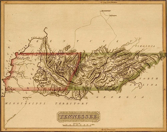 Tennessee 1817 White Modern Wood Framed Art Print with Double Matting by Vintage Maps