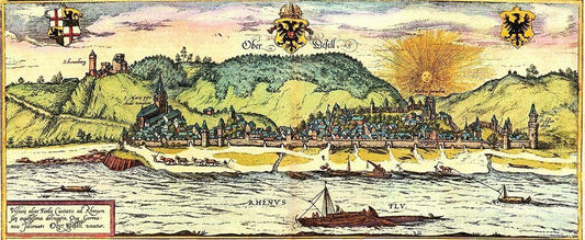 Oberwesel Germany White Modern Wood Framed Art Print with Double Matting by Hogenberg, Braun