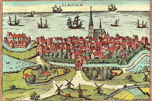 Rostock Germany White Modern Wood Framed Art Print with Double Matting by Hogenberg, Braun