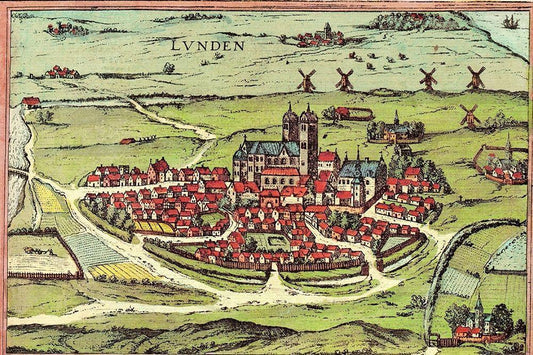 Lund Sweden White Modern Wood Framed Art Print with Double Matting by Hogenberg, Braun